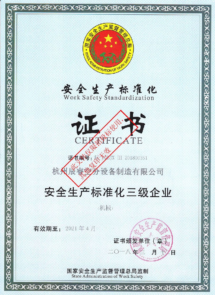安全生產(chǎn)標(biāo)準(zhǔn)化證書